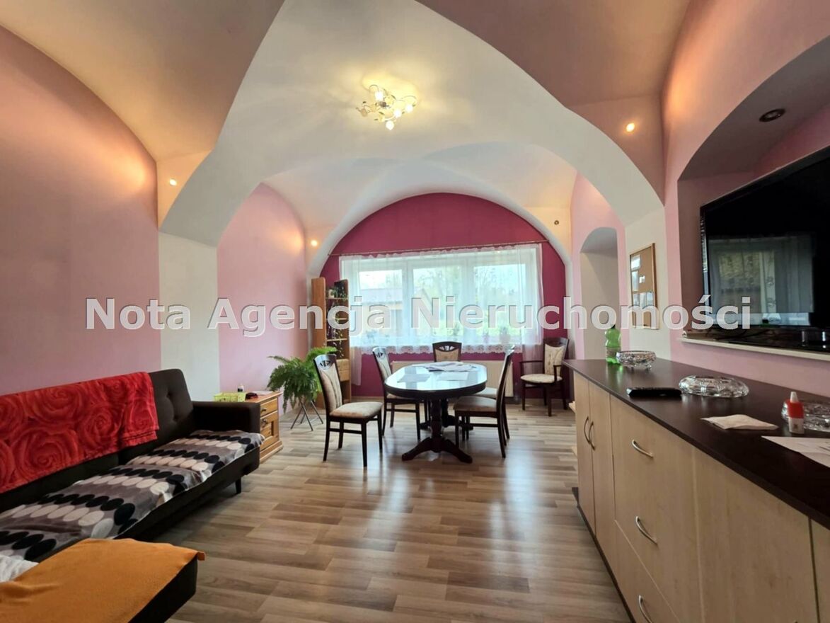 Słoneczna nieruchomość posadowiona na działce o powierzchni 1948m2. Posiadająca bardzo duże możliwości aranżacyjne, podczas których możemy wykonać dwa niezależne mieszkania, lub mały pensjonat. Obok budynku znajdują się wolnostojący garaż, oraz pomieszczenie gospodarcze. Całość posesji ogrodzona.